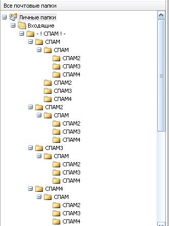 В итоге outlook превращается в нечто подобное этой картинке: много папок, вложенных друг в друга, а по большому счёту - одна большая помойка! И я прекрасно помню, что у всех руководителей, с которыми я общался и кто действительно активно работает с почтой - точно такая же картина в почтовой программе, будь то outlook, the bat или ещё какая-нибудь программа.
