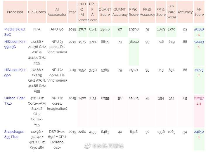 Мощность Snapdragon 865 для AI показывает 15 трлн операций/сек., а Snapdragon 855+ до 7 трлн операций в секунду. При этом MediaTek Dimensity 1000 в бенчмарке AI превосходит Snapdragon 855+ более чем в 2 раза! Так что тут не совсем понятно, кто кого уделывает.