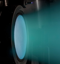 Экспериментальный двигатель был смонтирован в вакуумной камере. Далее его подключили к источнику электроэнергии и баку с ксеноном. В рабочую камеру устройства поступали атомы ксенона, туда же направлялся пучок электронов, и затем электроны вызывали ионизацию атомов инертного газа. При столкновении ксеноновых атомов с электронами получалось уже два электрона и тяжелый положительный ион, который подхватывался электрическим полем. Электрическое поле создавало поток ионов ксенона, ускоренных до сорока километров в секунду, и выбрасывало через сетчатый электрод наружу. Электроны отделялись магнитным полем и тоже выбрасывались вслед через отдельное сопло: при включении за двигателем возникало голубое свечение созданной им плазмы.