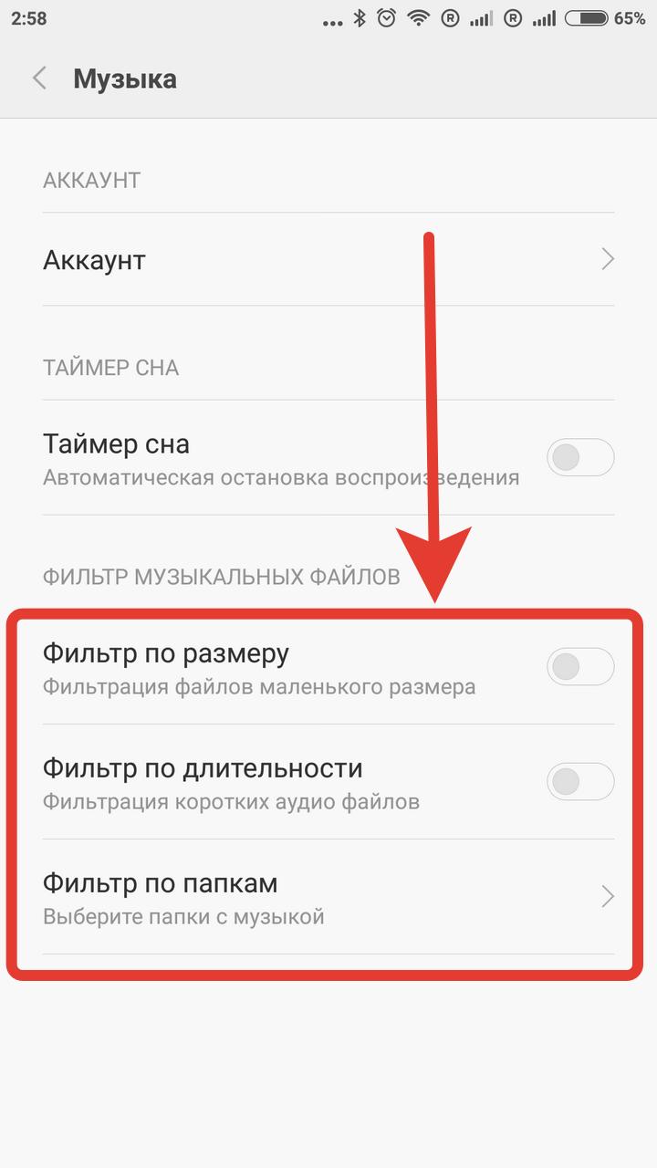 - Второй пункт - фильтрация по длительности. По умолчанию композиции короче 30 секунд скрываются от пользователя