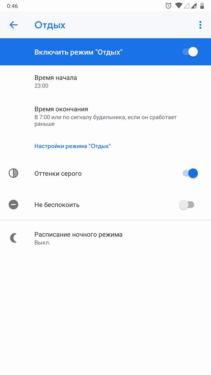 Также Digital Wellbeing предлагает режим Отдых, когда изображение на смартфоне по заданному времени становится черно-белым. В Google уверены, что черно-белые оттенки вместо цветного экрана помогут пользователям меньше проводить времени в смартфоне, особенно перед сном. Так контент становится менее интересным и привлекательным, но работает ли это на деле, пока что вопрос.
