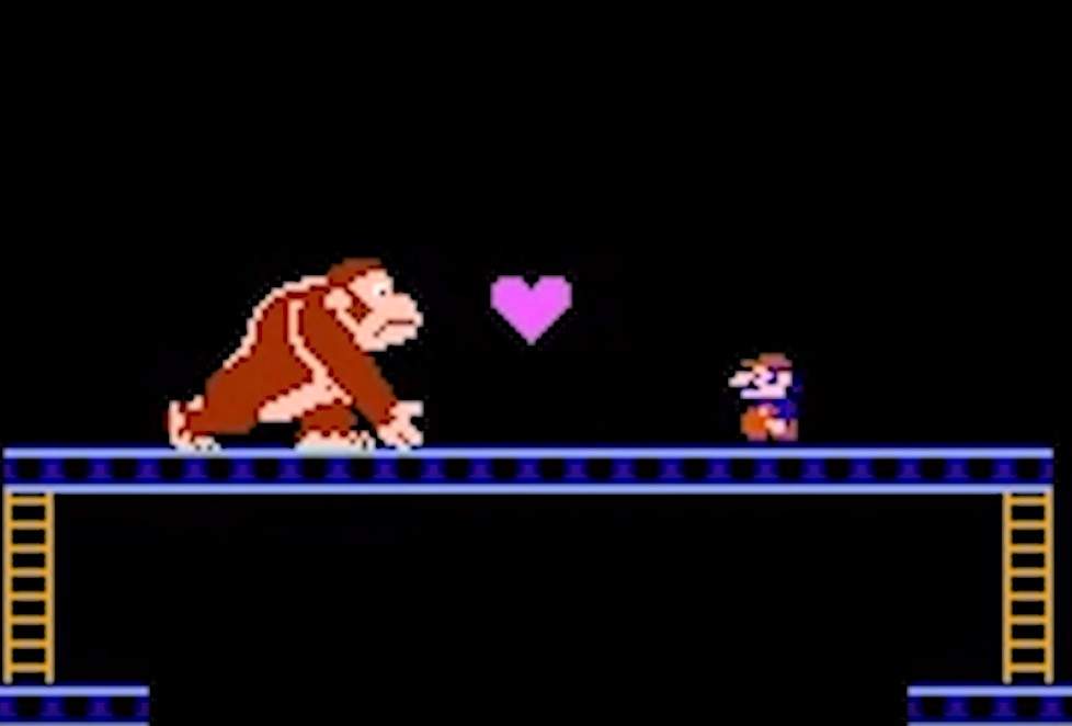 - Марио роняет даму и воссоединяется с обезьяной - теперь у них любовь.