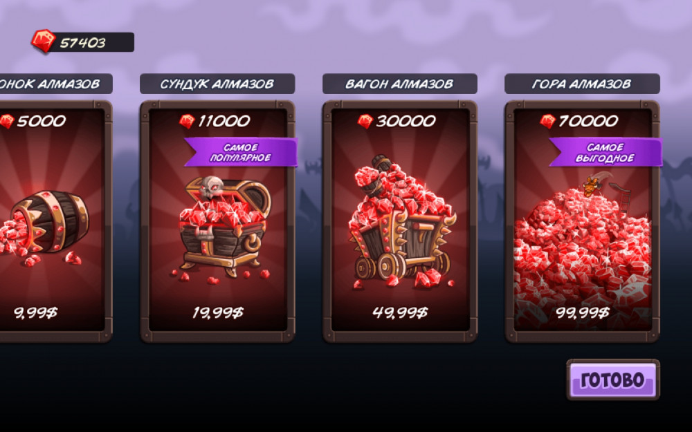 Если с Kingdom Rush Vengeance не хитрить, то игра – настоящая донат-машина. Сама игра стоит 239 рублей. Затем в игре есть ряд внутриигровых покупок: часть героев и башен открываются только за реальные деньги, а для любителей рандома есть лутбоксы по самым «приятным ценам (от $25 до $100). Однако все эти покупки вовсе не обязательны. Игра особо не защищена от взлома и на нашем сайте вы сможете скачать взломанную Kingdom Rush Vengeance со всеми открытыми персонажами и башнями. Зачем платить больше? lut